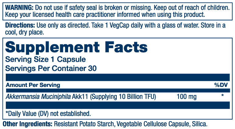 • This powerful formula delivers 100 mg of Akkermansia mucinpiphila Akk11 per serving