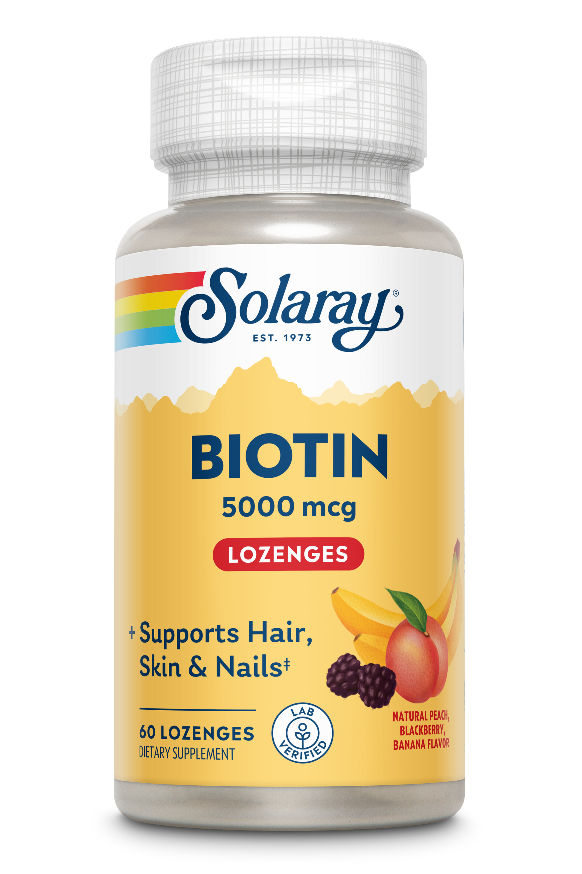 • Delivers 5000 mcg biotin in a convenient lozenge to support hair, skin, and nails*