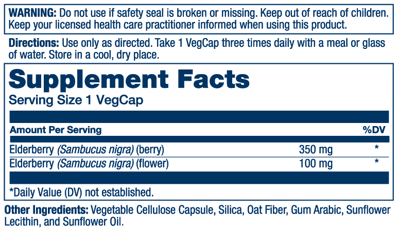 • Delivers 350 mg elderberry berry and 100 mg elderberry flower for potent herbal support*