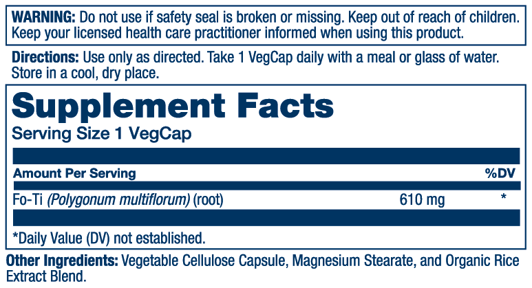 Fo-Ti (root), Vegetable Cellulose Capsule and Organic Rice Extract Blend.