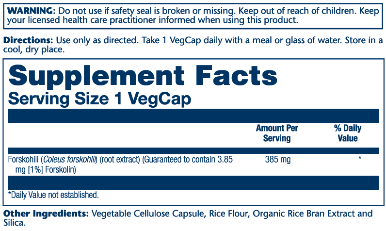 Use only as directed. Take 2 VegCaps daily with a meal or glass of water.