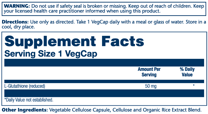 L-Glutathione (reduced), Vegetable Cellulose Capsule, Cellulose and Organic Rice Extract Blend.