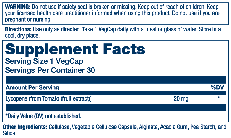• Delivers 20 mg of lycopene for cardiovascular and prostate support*