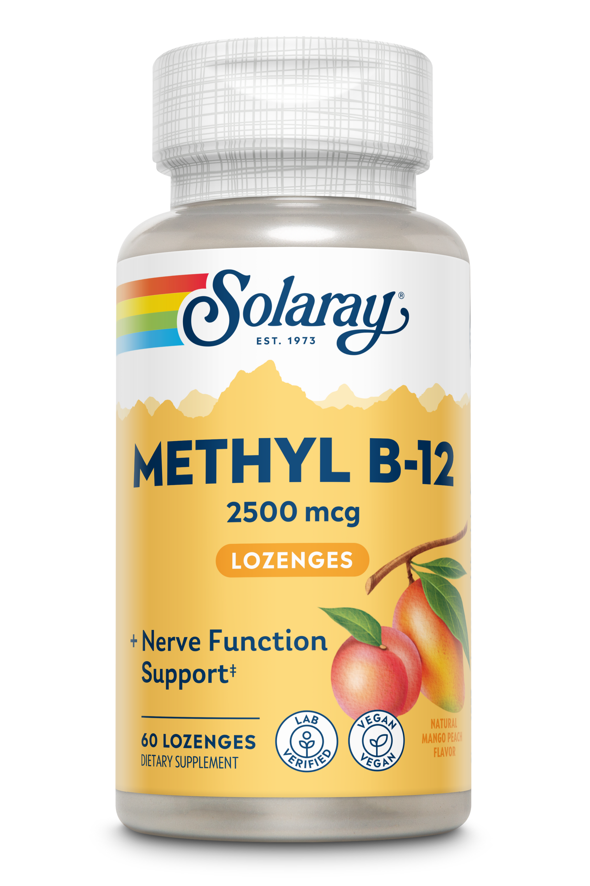 Solaray Methyl B-12 Lozenge is a deliciously convenient way to add vitamin B-12 to your daily diet. In fact, each one-lozenge serving provides approximately 2,500 mcg or 104,167% of the recommended dietary allowance of B-12 as methylcobalamin, the biologically active form of B-12 in the body.