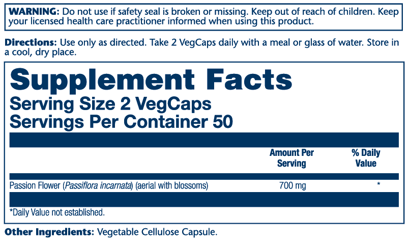 Passion Flower (aerial with blossoms), Vegetable Cellulose Capsule.