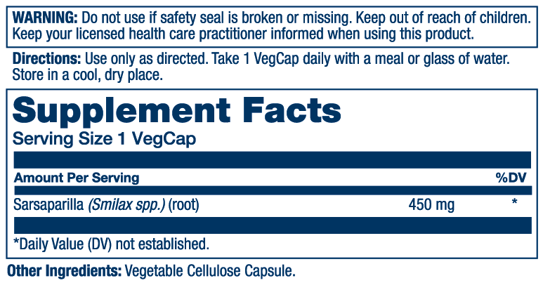 Sarsaparilla (root), Vegetable Cellulose Capsule.