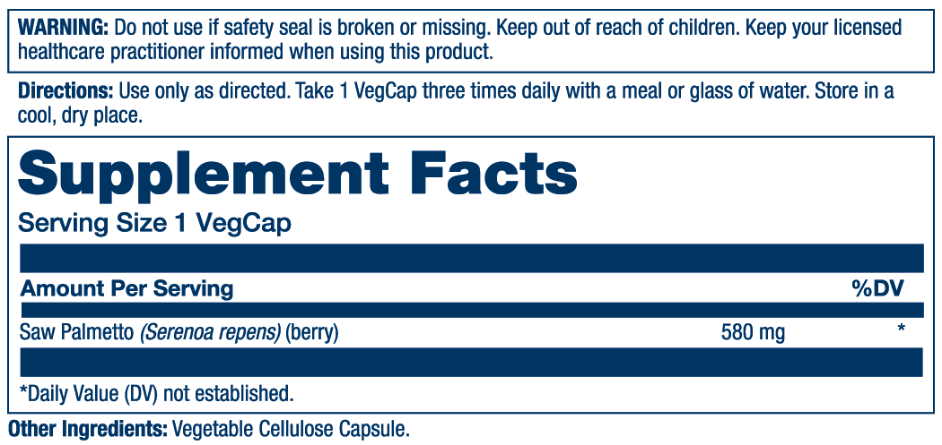 Saw Palmetto (berry), Vegetable Cellulose Capsule.
