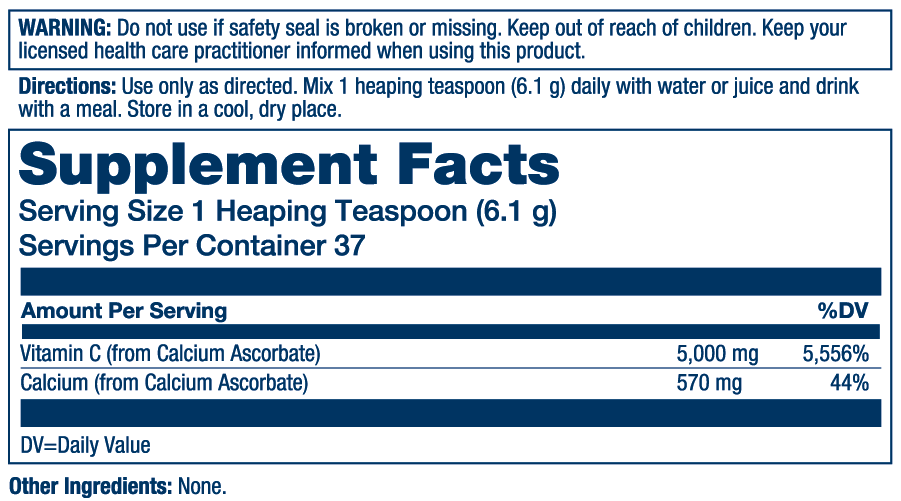 • Delivers 5,000 mg of vitamin C per serving for potent immune system and cardiovascular support*