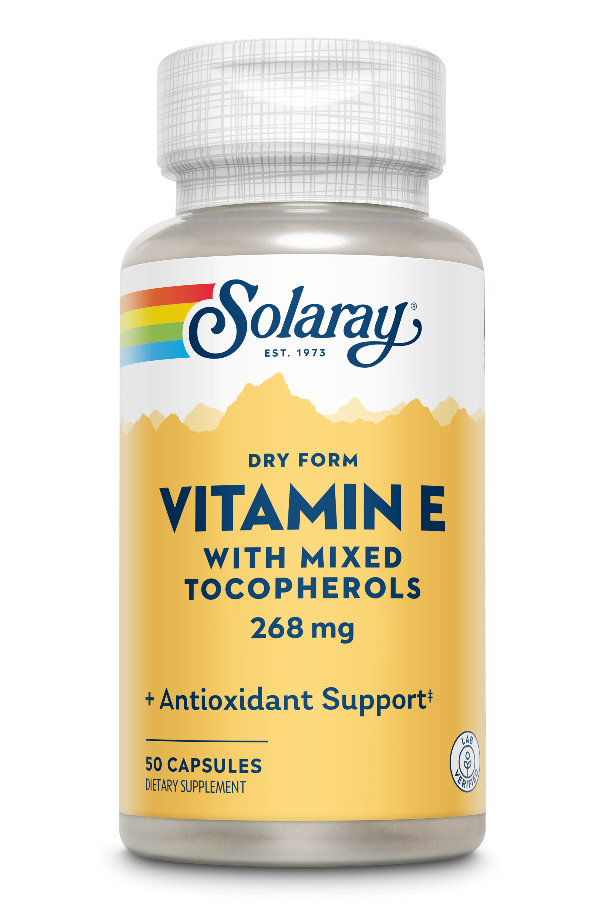 Non-GMO and naturally sourced, Solaray Dry Form Vitamin E provides 400 IUs of this heart-healthy nutrient. We've included mixed tocopherols -- d-beta, d-gamma, d-delta and d-alpha -- to enhance the antioxidant support, so you get the most from every capsule.